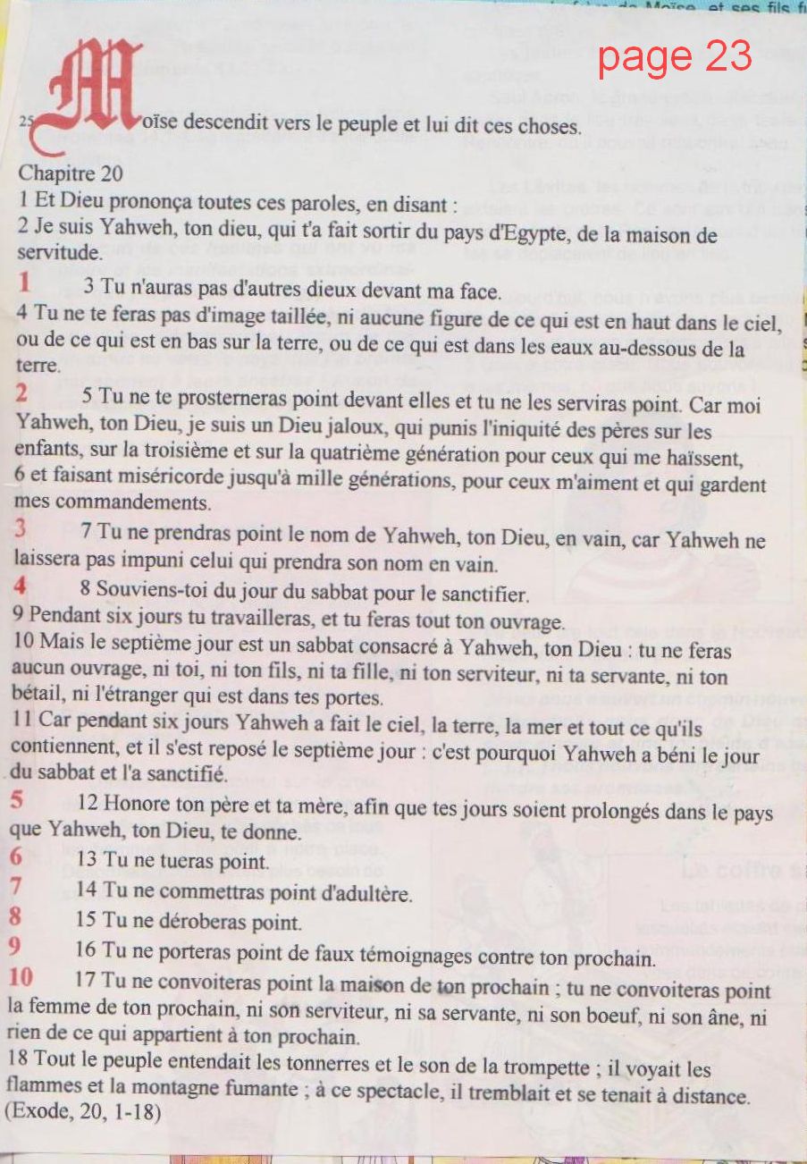 Copie des 5 commandements de l’église page 46 sur le livret catéchisme